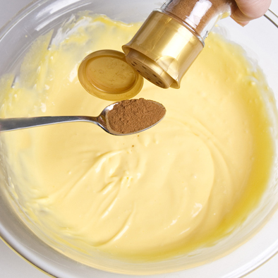 Aromatizamos la masa de mascarpone con una cucharadita rasa de canela molida Línea Oro CANNAMELA.