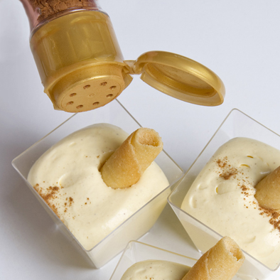 Decoración: completamos los postres con un barquillo y espolvoreando canela molida Línea Oro CANNAMELA.