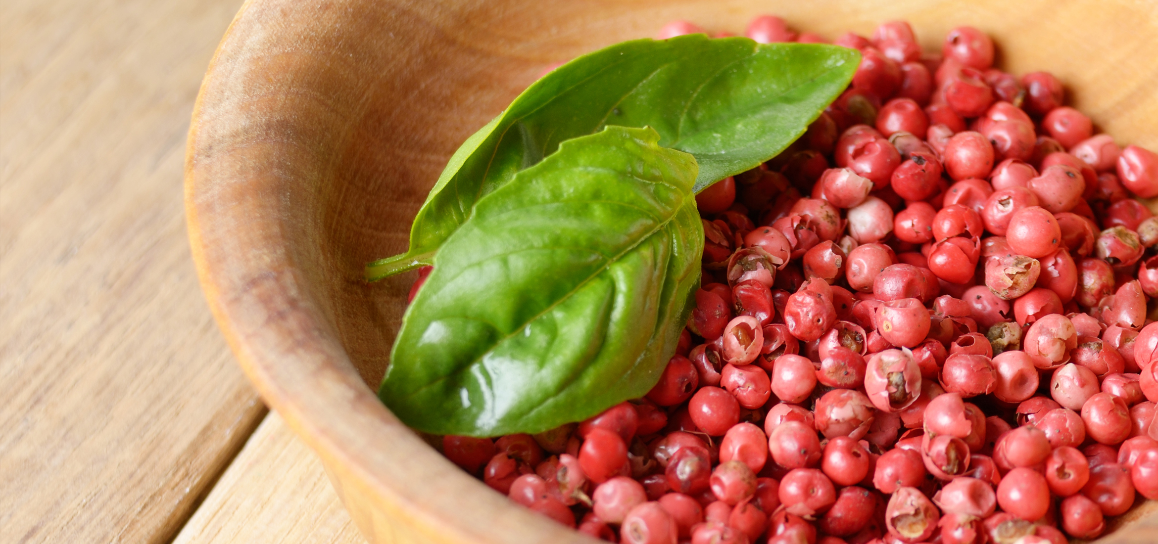 Il pepe rosa è piuttosto delicato e il suo aroma dolce e speziato è ideale per insaporire il pesce, in particolare carpacci di pesce spada, tonno o salmone, e le carni bianche. Inoltre, il suo gusto si sposa molto bene con salse a base di yogurt, burro o mascarpone e con le insalate e i formaggi, e si accompagna anche con uova e torte salate.