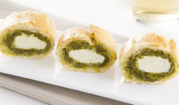 In un vassoio appoggiamo il primo pezzo di pasta sfoglia, farciamo con la crema, poi alterniamo con pomodorini e rotoloni di zucchine grigliate che condiamo con origano, sale e un filo d’olio.