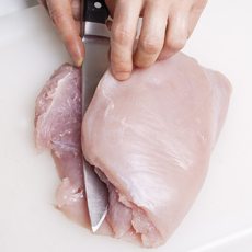 Aprite a libro la fesa di tacchino, poi battetela con il batticarne per assottigliarla.