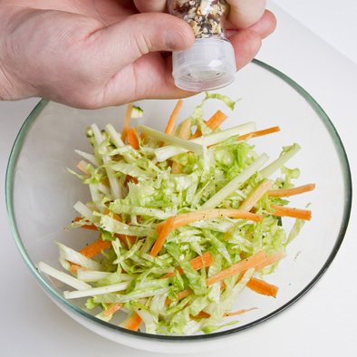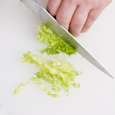 Tagliate a julienne la lattuga dopo aver eliminato la costa centrale.