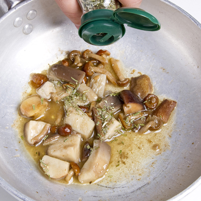 Sugo ai funghi: rosolate in olio i funghi con un pizzico di Rosmarino Liofilizzato CANNAMELA