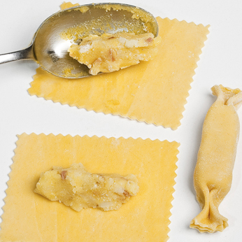 Caramelle di patate e speck