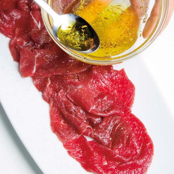 Un piatto semplice e veloce: gustoso carpaccio di cavallo, accompagnata da una delicata marinatura al timo, per un secondo ricco di sapore.