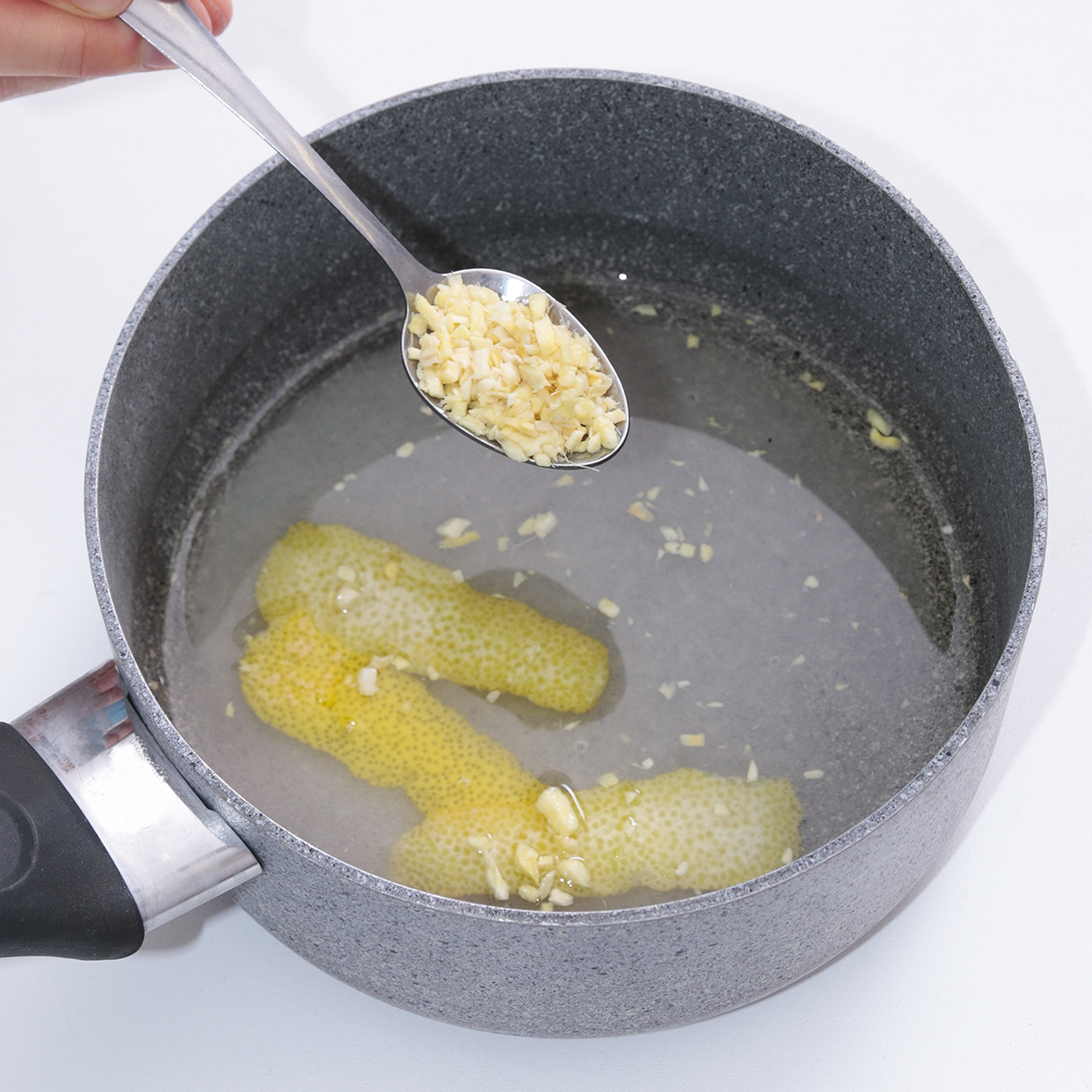 Farcia: bollire per 2-3 min l’acqua con la scorza di metà limone, 70 g di zucchero e lo zenzero liofilizzato Cannamela.