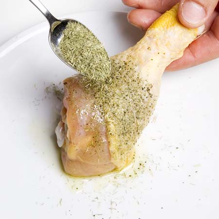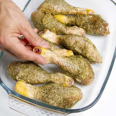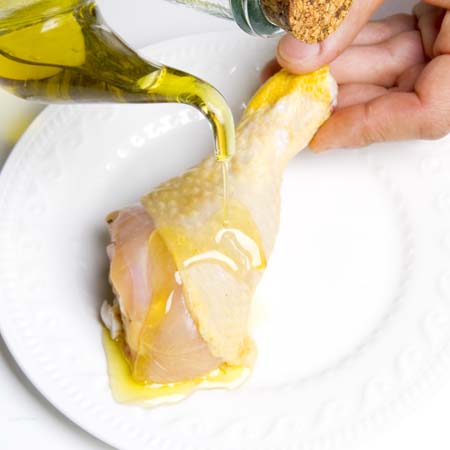 Ungere le cosce di pollo.