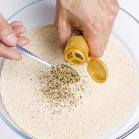 Mescolare al pangrattato un cucchiaino di erbe aromatiche RICETTA DI Provenza CANNAMELA.