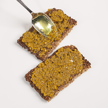 Spalmare le fette di pane con il paté al curry CANNAMELA.