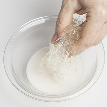 Sciogliere in 40 g di latte caldo la colla di pesce già ammollata in acqua fredda e ben strizzata, poi unirla al latte rimasto.