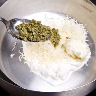 Grattugiate il formaggio e ponetelo nella panna.