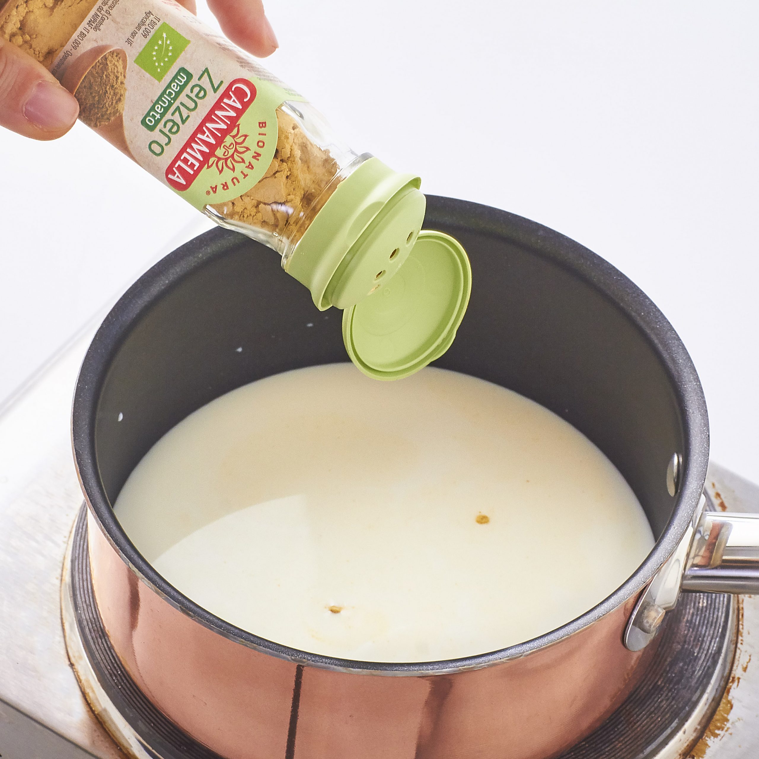 Spegni il fuoco, aggiungi lo Zenzero macinato Cannamela Bionatura e se gradito anche una spolverata di Zenzero liofilizzato a piacere, poi mescola. Lascia lo zenzero in infusione per almeno mezz’ora o per più tempo in base al grado di intensità desiderato.