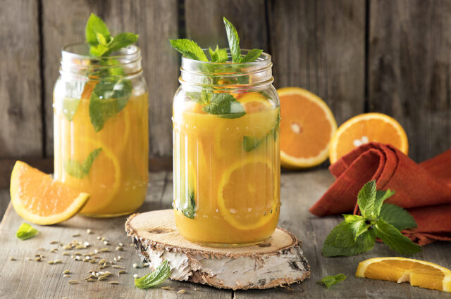 Ginger drink, bevanda al succo di pompelmo e semi di anice, tè verde al cardamomo e fragole