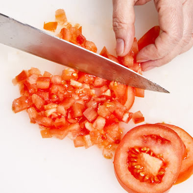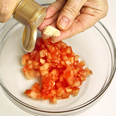 Aggiungere l’aglio macinato CANNAMELA, il peperoncino, un pizzico di sale e il cipollotto tritato.