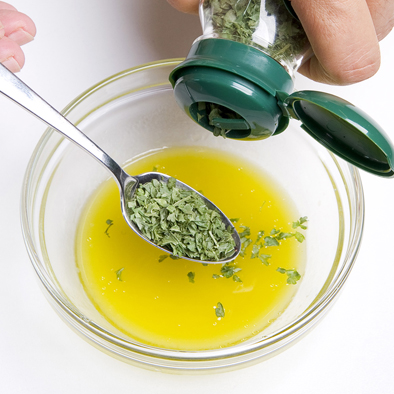 In una ciotolina emulsionate l’olio con il succo di limone e 3 cucchiaini di Prezzemolo liofilizzato CANNAMELA.