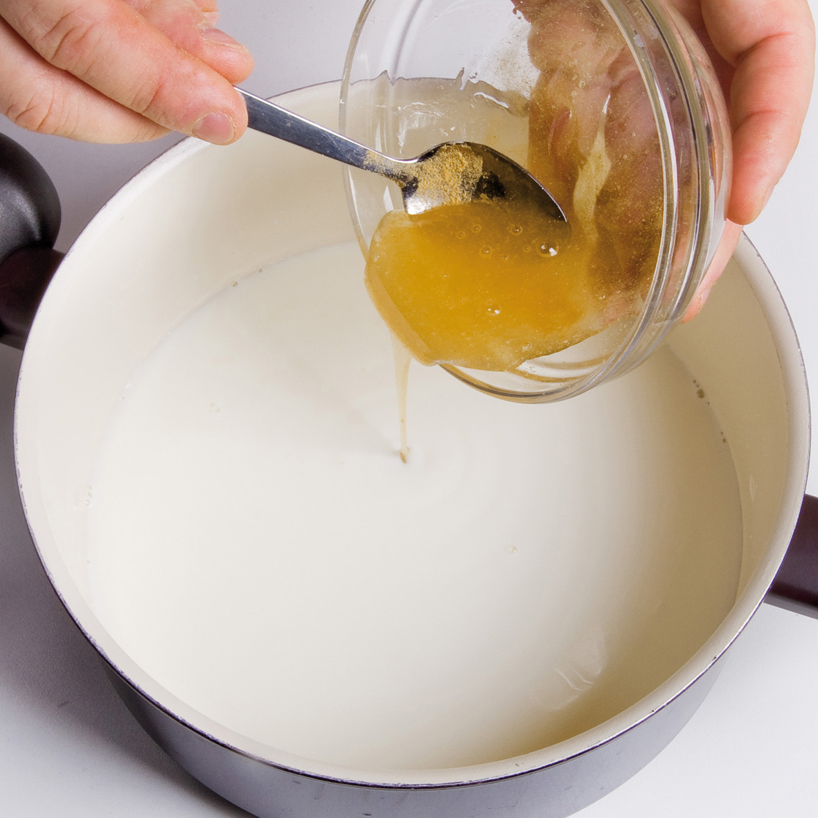 Aggiungere il composto di miele e zenzero macinato CANNAMELA e scaldare a piacere.