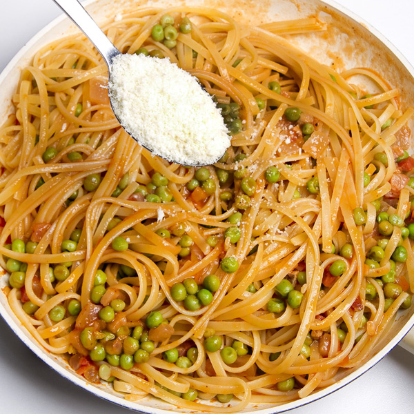 Linguine con guanciale e piselli - Ricetta - Cannamela