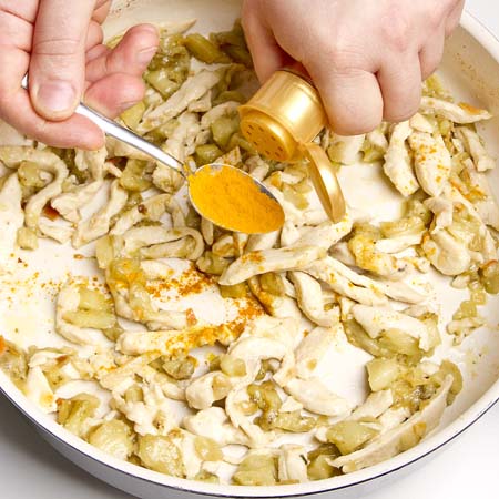 Stupisci i tuoi ospiti con questa ricetta originale! Melanzane ripiene di pollo e riso, aromatizzate dal sapore speciale della curcuma, per portare in tavola un piatto ricco di sapore.