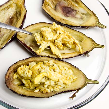 Melanzane ripiene di pollo e riso