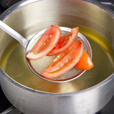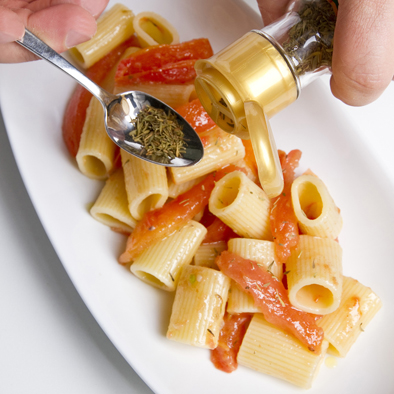 Mezze maniche con pomodori fritti