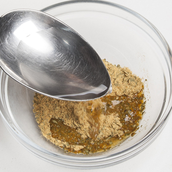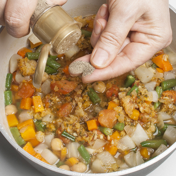 Sciogliere le Spezie per Paella CANNAMELA in due cucchiai di acqua calda, poi unirlo al composto di pane e mandorle e irrorare con l’aceto.