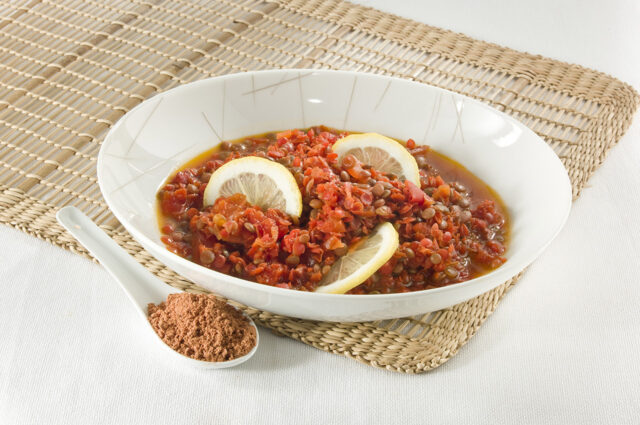 Mescolare e unire la salsa ottenuta al soffritto di cipolla e pomodoro. Mescolare e versare nella minestra.