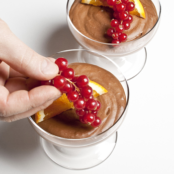 - per decorare fettine di arancia, mirtilli, ribes e riccioli di cioccolato