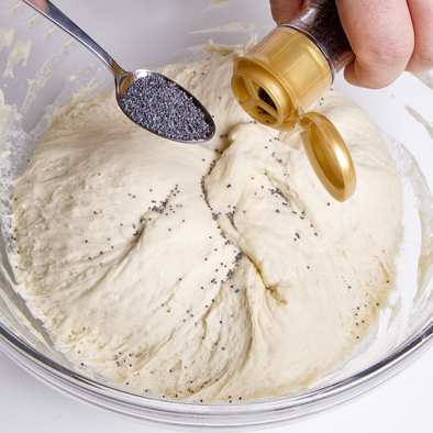 Lasciate lievitare la pasta protetta per 60 minuti, poi rilavoratela e aggiungete 2 cucchiaini colmi di Semi di papavero Serie Oro CANNAMELA.