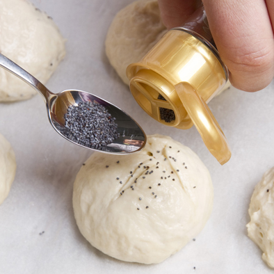 Pennellate i panini con acqua e albume sbattuti e spolverizzateli con i Semi di papavero Serie Oro CANNAMELA rimasti.