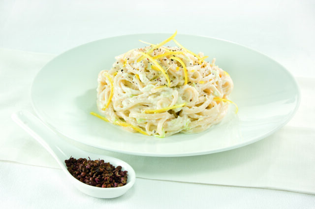 Fare saltare la pasta per 1-2 min, insaporire con un pizzico di pepe nero macinato CANNAMELA, il formaggio, il prezzemolo CANNAMELA