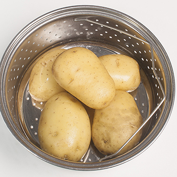 Adagiare il cestello nell’apposita pentola riempita di acqua.