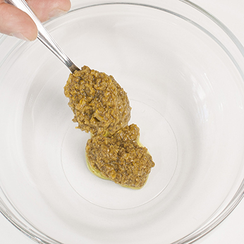 Porre il paté al curry CANNAMELA in una ciotola e diluirlo con l’olio. Mescolare per rendere la salsa omogenea.