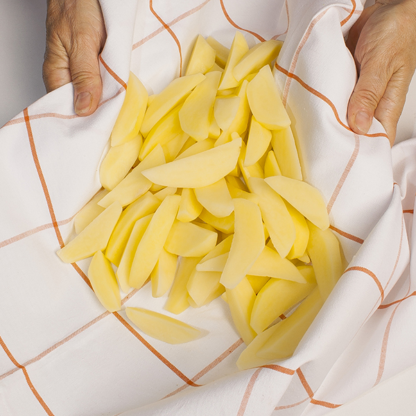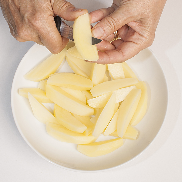 Immergere le patate nell’olio e cuocere fino a renderle croccanti.