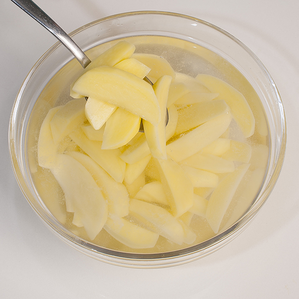 Lasciare in ammollo gli spicchi in acqua fredda per 10/15 min.