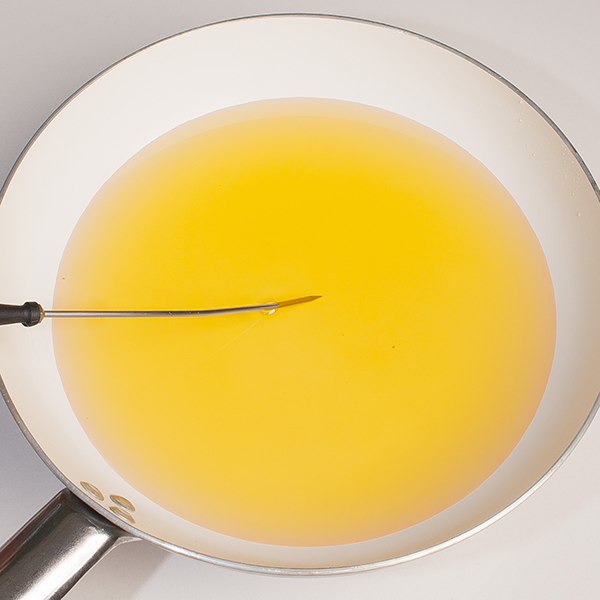 In una padella di 28 cm x 6 cm versare l’olio e portarlo ad una temperatura di 160 °C.