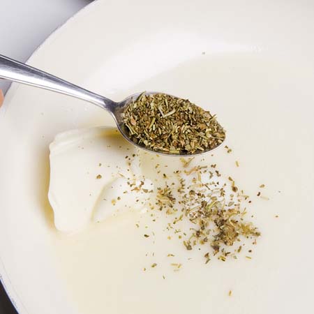 Rosolare nel burro per 5 min le erbe aromatiche RICETTA DI Provenza CANNAMELA e l’aglio macinato CANNAMELA.