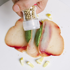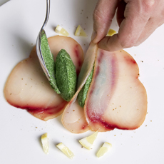Pesce spada affumicato con quenelle di spinaci