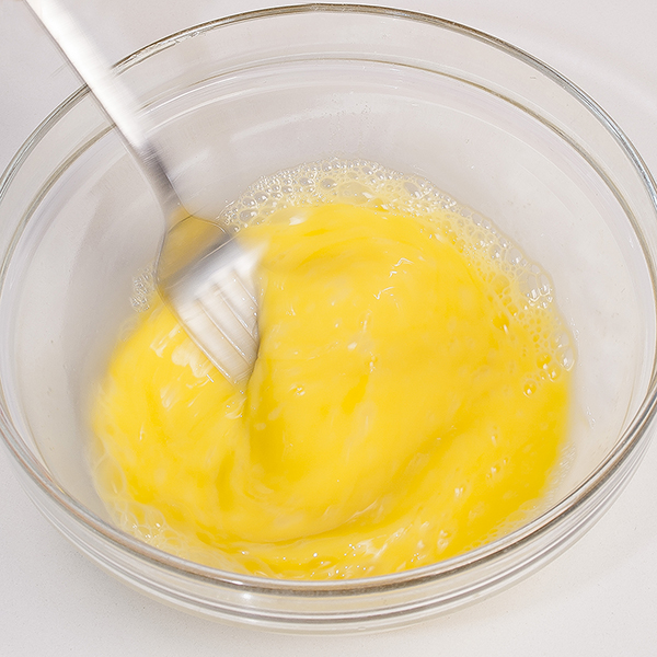 Sbattere l’uovo e aggiungere 1 cucchiaio d’acqua.