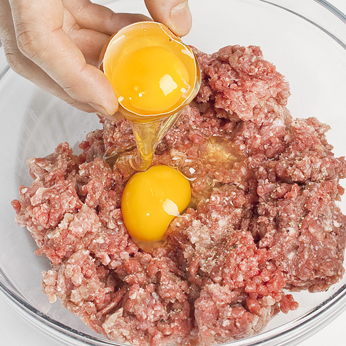 Condire la carne macinata con il parmigiano grattugiato, il sale e le uova.