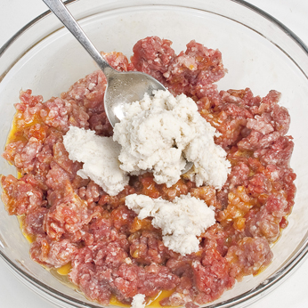 Aggiungere la mollica di pane ammollata nel latte e strizzata.