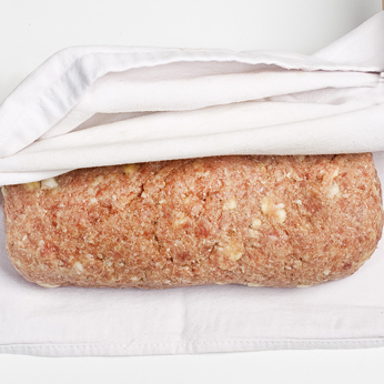 Formare il polpettone e avvolgerlo in un telo o tovagliolo pulito.