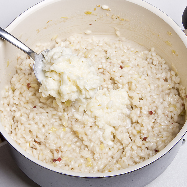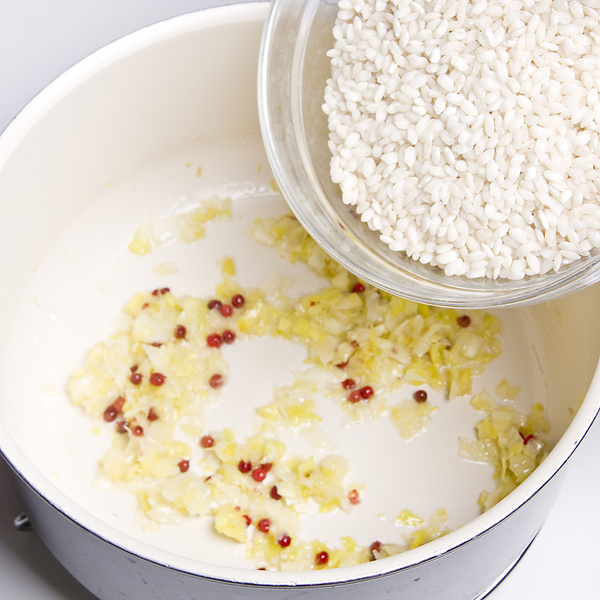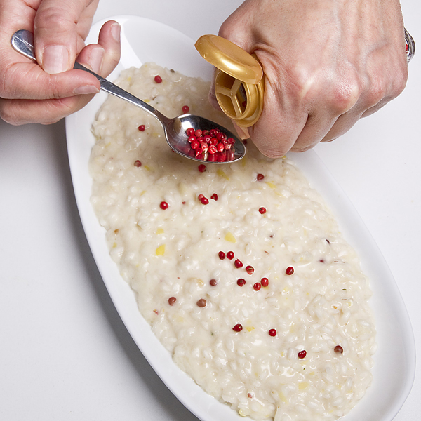 Risotto con provola e bacche rosa