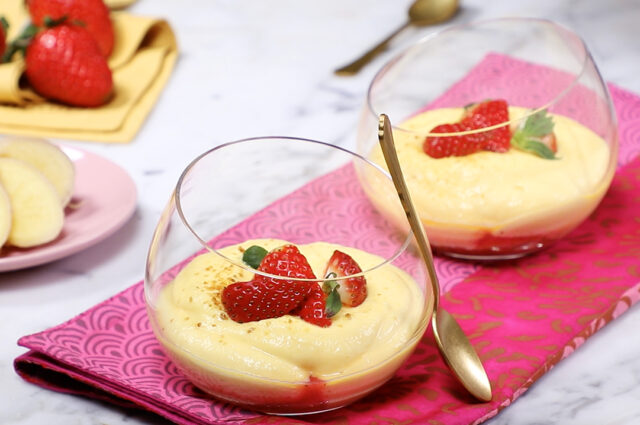 Dividere lo zabaione in coppette o bicchierini e servire con la sbrisolona spezzettata.