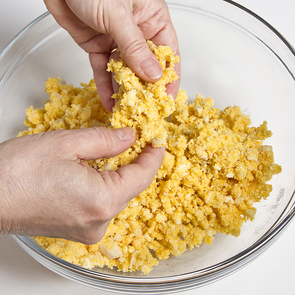 Sbrisolona: impastare tutti gli ingredienti senza lavorare troppo l’impasto, perchè rimanga “a briciole”.