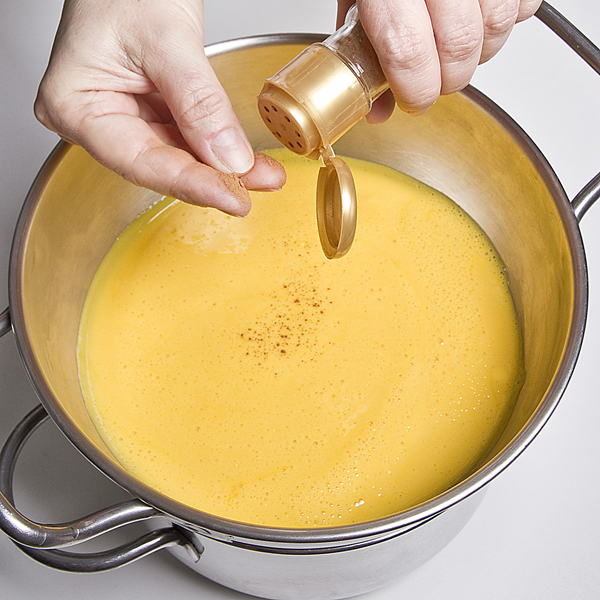 Quando sarà gonfio e sostenuto, allontanare dal calore e aromatizzare con un pizzico di cannella macinata CANNAMELA.