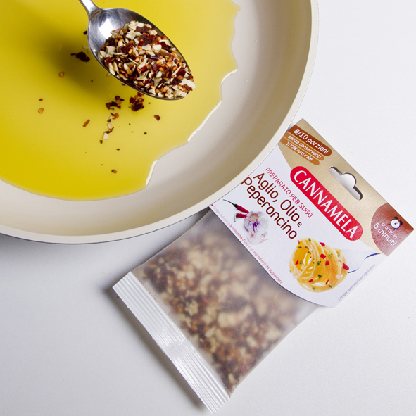 - 1/2 confezione Preparato per sugo aglio, olio e peperoncino CANNAMELA