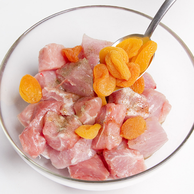 Porre lo spezzatino nel sacchetto forno Cuki con tutto il condimento e chiuderlo con l’apposito legaccio.
