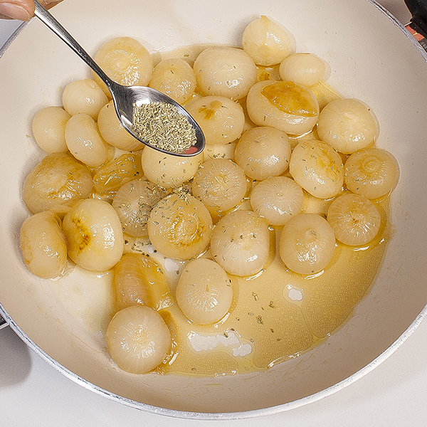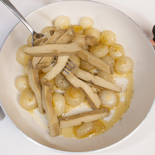Spezzatino di seitan con cipolline al rosmarino