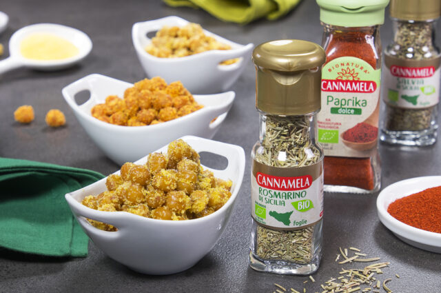 Un'idea facile e originale per preparare un aperitivo gustoso? Taglia in stick della polenta fredda, aromatizzala con le erbe aromatiche e spezie Cannamela e cuoci in padella: sentirai che croccantezza!
