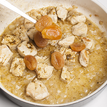 Il tajine è una piatto tipico della cucina nordafricana che prende il nome dal caratteristico piatto in cui viene cotto. Qui viene proposto il tajine di pollo, con l’aggiunta di albicocche e semi di sesamo